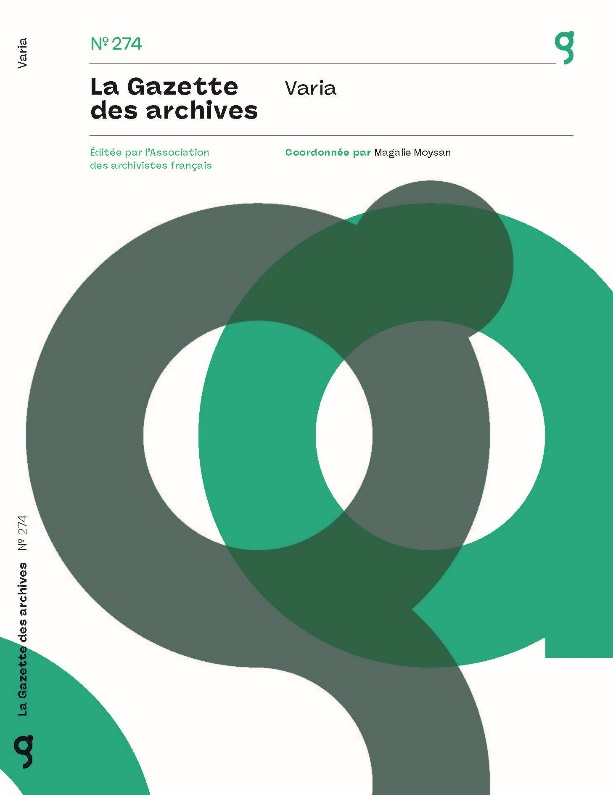Nous avons le plaisir de vous annoncer la parution du numéro 274 de La Gazette des archives, intitulé « Varia», coordonné par Magalie Moysan.